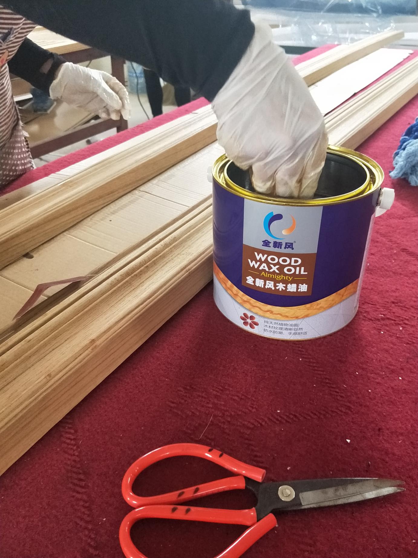 白茬打磨到400砂砂,搽色/待干20分钟,搽底油/待干三个小时,600砂纸轻砂,搽底油,待干三至四个小时,800海绵砂块轻砂,修色,搽面油,收干净,干燥半天再搽第二次面油,使用干布全面收干净。