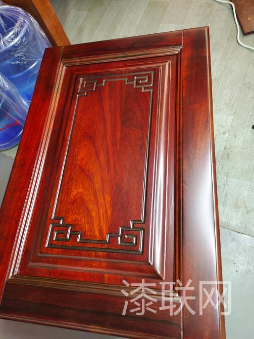 7、QL8330水性双组分高耐性三分光泽特清面(35度光泽)易施工、不缩边,抗流挂,高通透高耐性,返工重涂也不易发蒙,清膜细腻滑爽、高耐性,耐开水烫及耐冷水不发白,配10%的QL870水性固化剂,加水10-15%。在油性底漆上附着力也非常好,切记油性底漆使用油性修色,水性底漆使用水性修色。