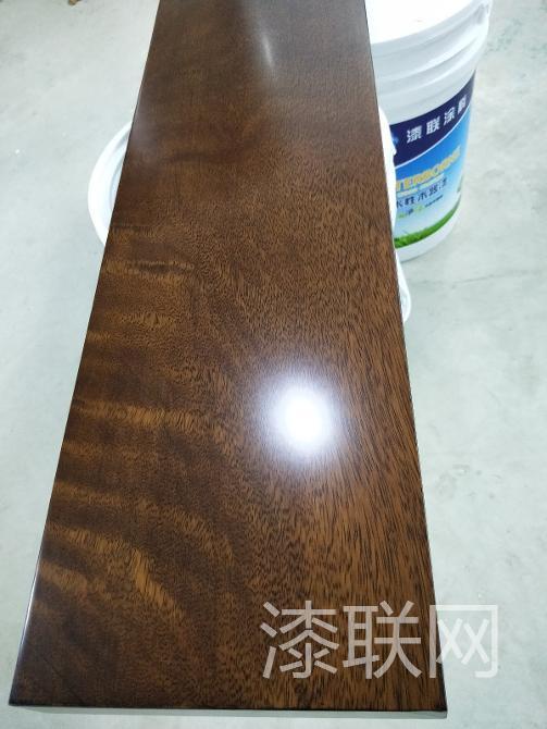 注:uv底水面也可使用漆联TQM9803单组份水性清面加2%交联剂使用,干燥后漆膜可以耐100度开水不发白。也可做一次UV底,然后喷涂一次双组份水性底漆,再打磨做水性修色,然后才喷水面,这种工艺更安全,附着力更好。