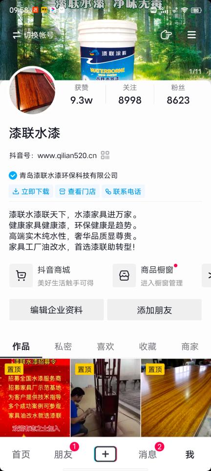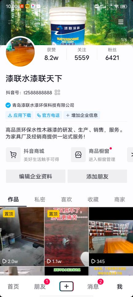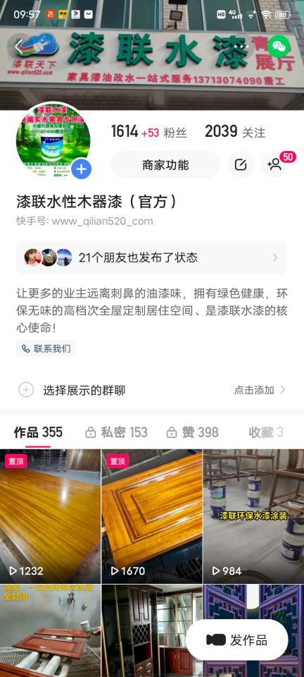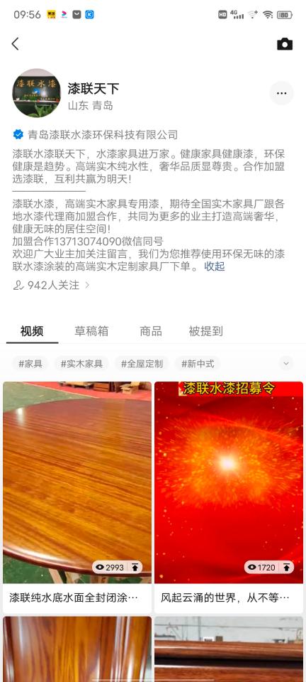 随着短视频平台的兴起,漆联水漆官方也及时入驻了这些短视频平台,大家可以在各大App查看漆联水漆在抖音、快手,微信视频号的短视频官网账号,抖音搜:漆联水漆,漆联水漆联天下,快手搜:漆联水性木器漆,微信视频号搜。漆联天下